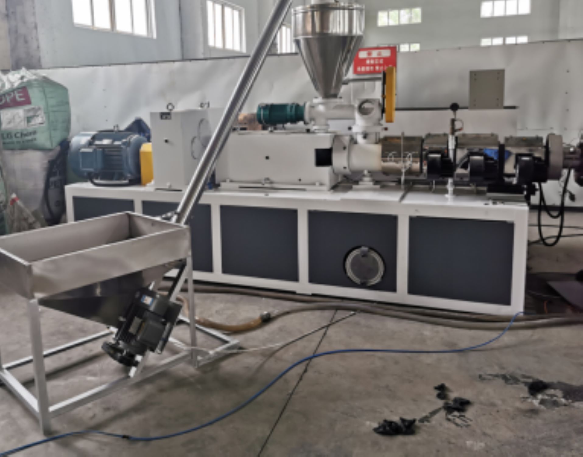 2. پیویسی پائپ پروڈکشن لائن میں مخروط جڑواں سکرو ایکسٹروڈر ، ویکیوم انشانکن ٹینک ، پرنٹر ، ٹریلر ، کٹر ، اسٹیکر کرین ، وغیرہ شامل ہیں۔
