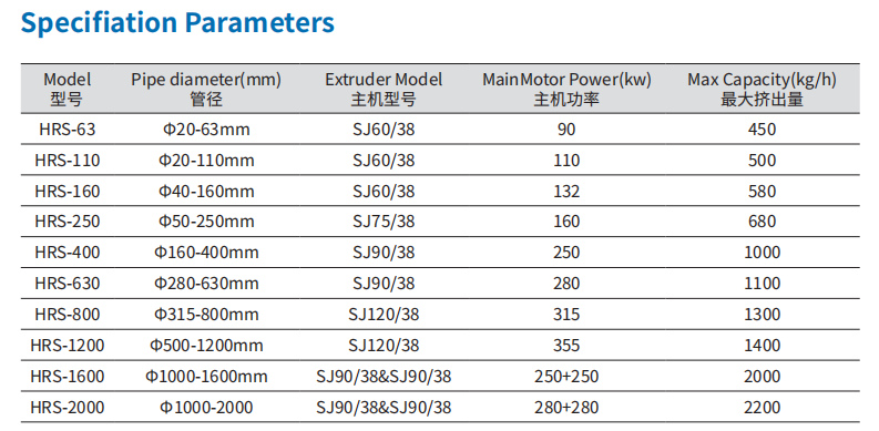 صلاحیت: سنگل سکرو ایکسٹروڈر ، اعلی صلاحیت والے پیئ رال پر کارروائی کے لئے موزوں ، زیادہ سے زیادہ 1000 کلوگرام فی گھنٹہ کی گنجائش کے ساتھ۔ قطر: 16 سے 800 ملی میٹر تک۔ معقول ڈیزائن کو اپنانا اور محفوظ پروڈکشن ٹکنالوجی کو جذب کرنا ، اس نے سی ای اور آئی ایس او سرٹیفکیٹ حاصل کیے ہیں